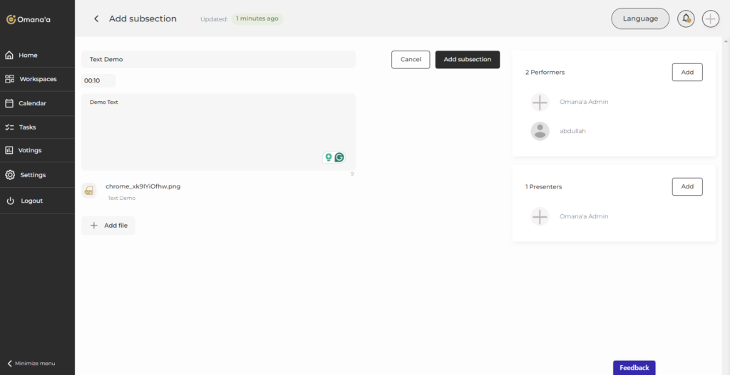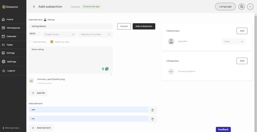 - التصويت: جلسة تصويت خلال الاجتماع، يمكنك اضافة: دليل التصويت