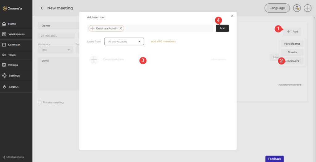 - بمجرد تحديد المستخدمين، انقر فوق الزر “إضافة ضيف“.