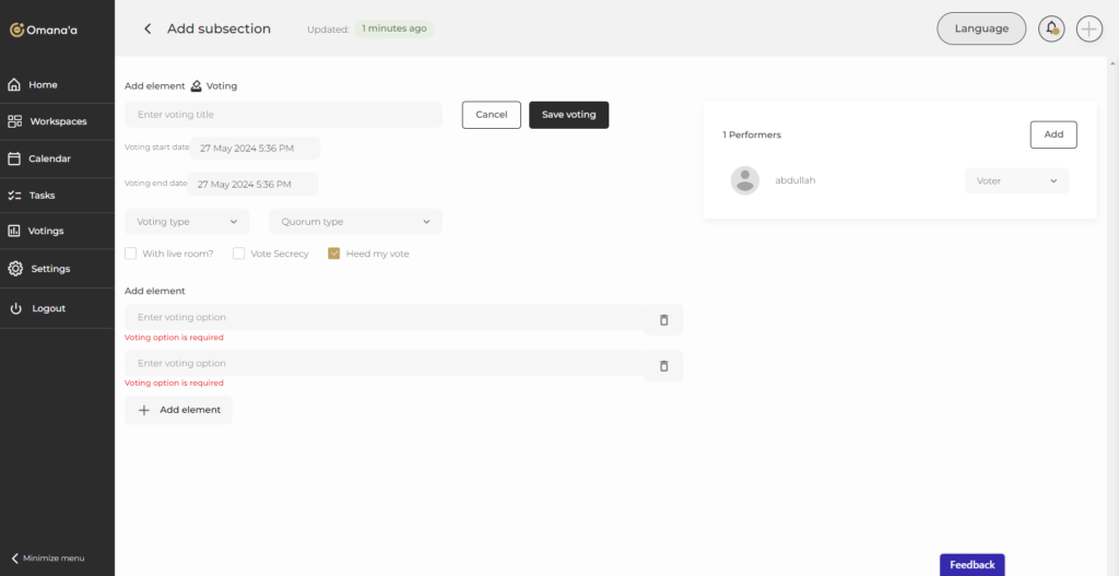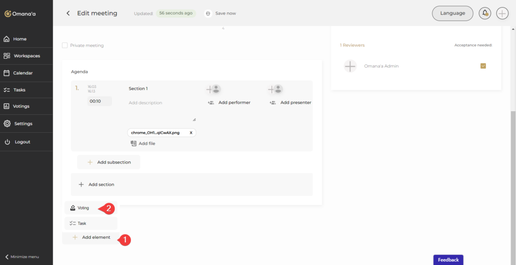 - بمجرد إنشاء الاجتماع وحفظه كمسودة، يمكنك الوصول إليه بسهولة في أي وقت لملء بنود جدول الأعمال: