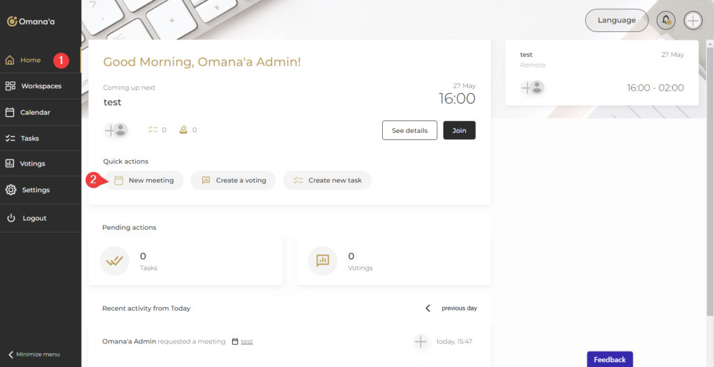 - يمكن للمستخدمين إنشاء اجتماع جديد من خلال