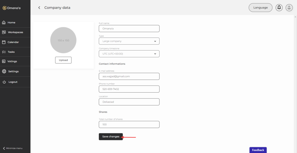 - من هنا، يمكنك عرض وتعديل بيانات الشركة مثل: