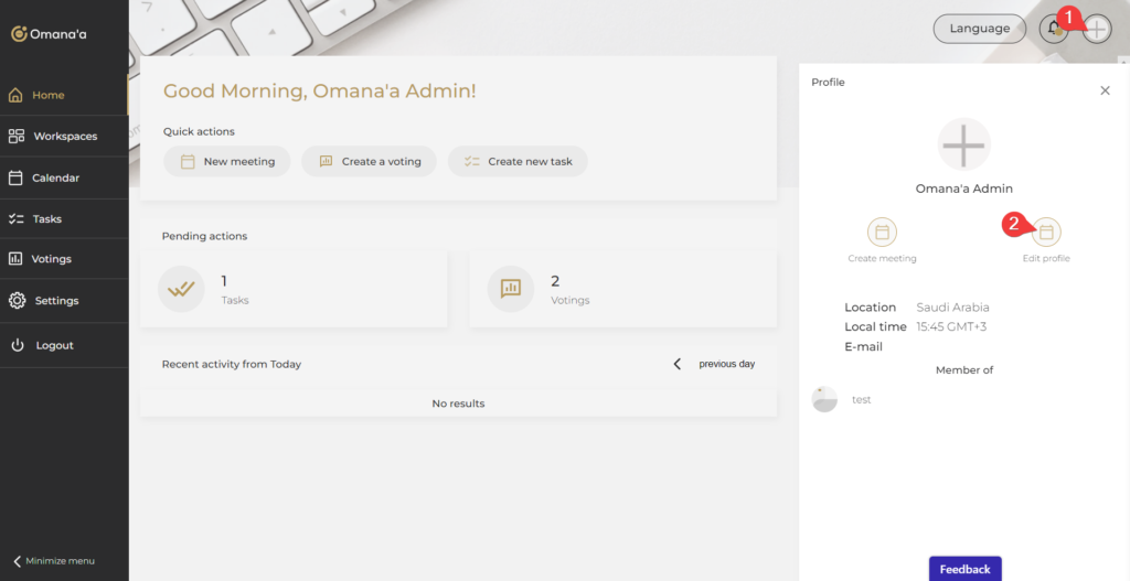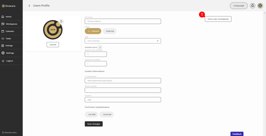 يمكن للمستخدمين الخروج من مساحات العمل التي انضموا إليها، من خلال أيقونة صورة الملف الشخصي في الزاوية اليمنى العليا ثم “تحرير الملف الشخصي“.