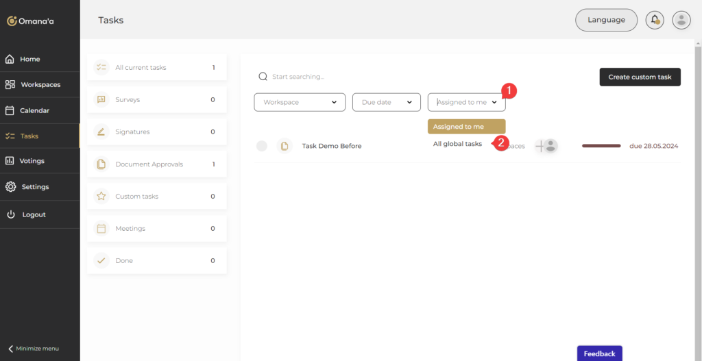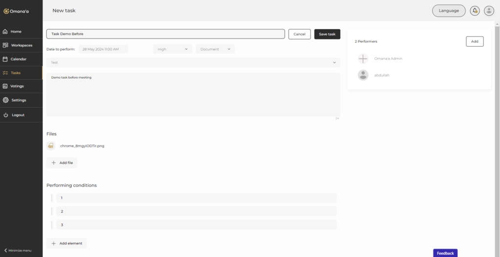 تم تصميم المهام في أمناء لمساعدتك على تنظيم عملك، وإدارة قوائم المهام الخاصة بك، وتتبع التقدم بكفاءة. من خلال النقر على علامة التبويب “المهام” في القائمة