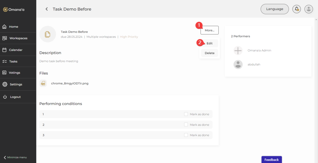 - لتحرير تفاصيل المهمة، هناك خطوات عامة لتمكينك من التعديل/الحذف