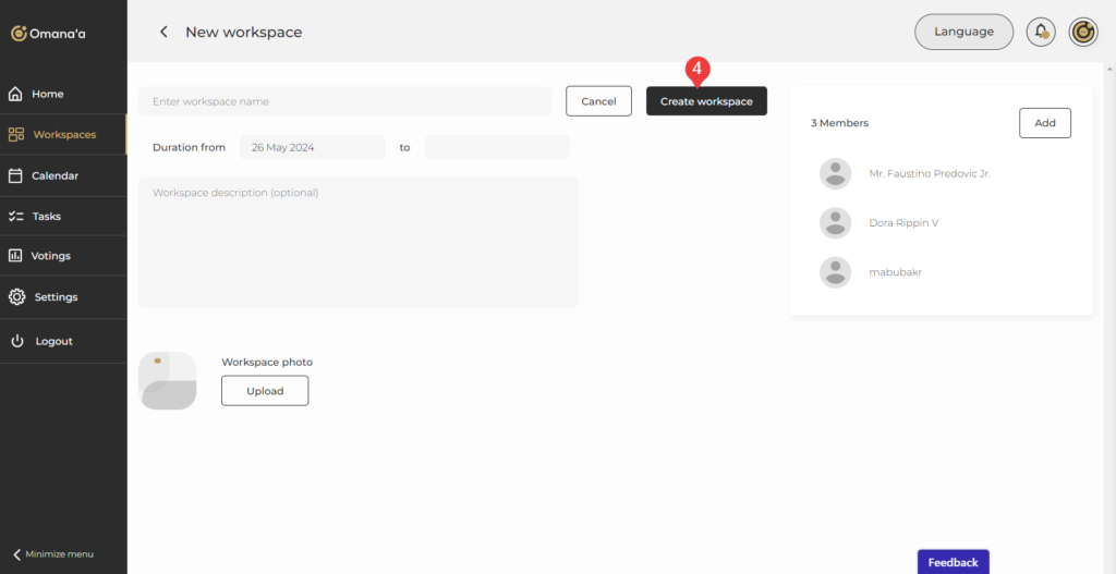 - بمجرد الانتهاء من ملء جميع معلومات مجموعة العمل، انقر فوق الزر “إنشاء مجموعة عمل” لإنشاء مجموعة العمل وإرسال الدعوات إلى الأعضاء.