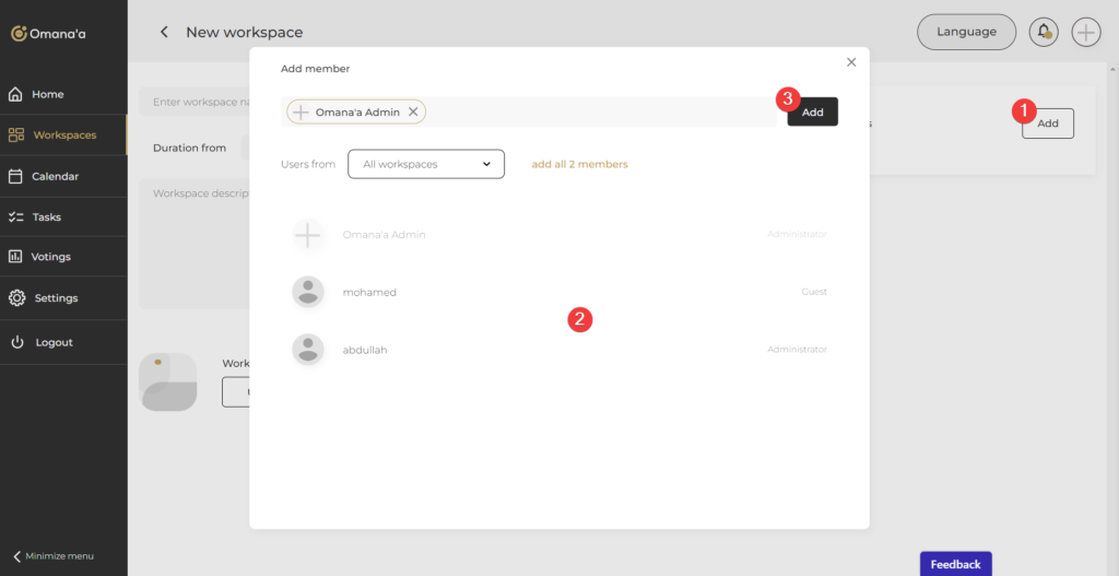 - بمجرد تحديد المستخدمين، انقر فوق الزر “إضافة“.