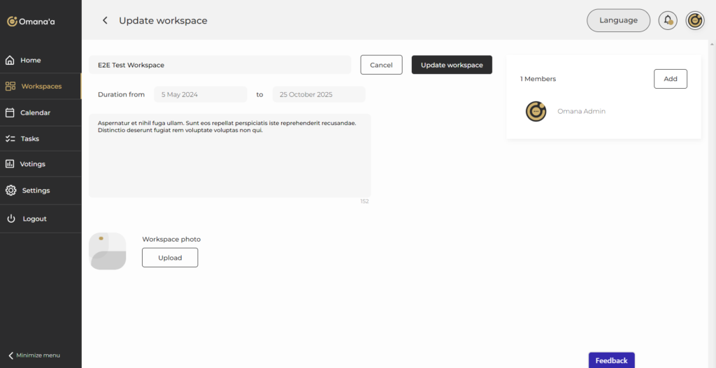 مجموعات العمل في أمناء هي مجموعات تعاون افتراضية حيث يمكن للمستخدمين مشاركة المستندات ومناقشة الأفكار والتعاون في مشاريع محددة من خلال النقر على علامة التبويب “مساحات العمل” في القائمة: