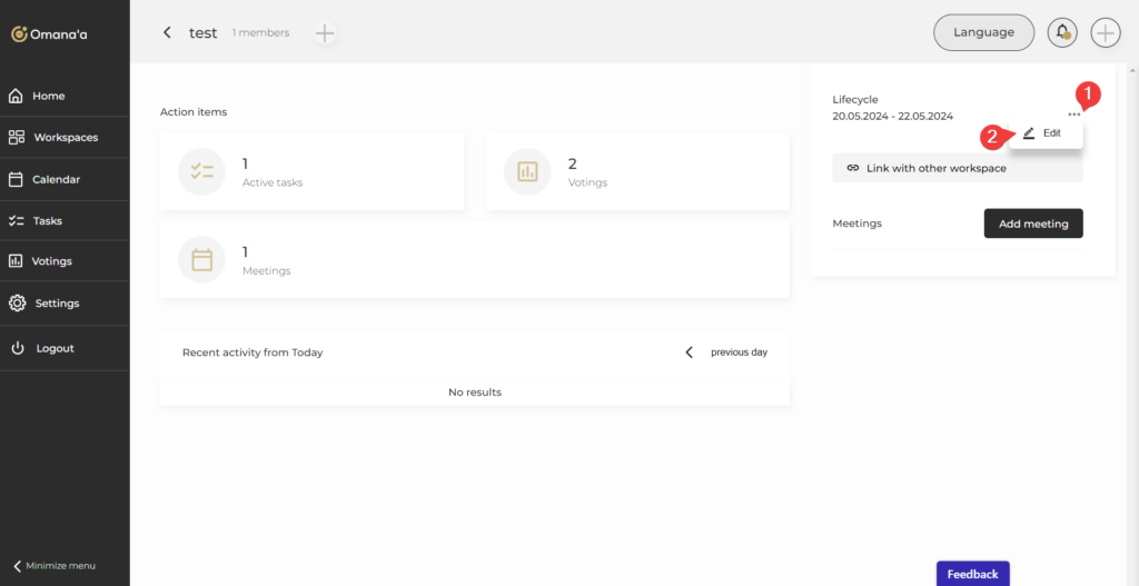 - داخل مجموعة العمل، يمكنك تحرير تفاصيل مجموعة العمل، وإضافة أعضاء، وربط مجموعة العمل بأخرى، وإنشاء الاجتماعات، واستعراض أنشطة مجموعة العمل: