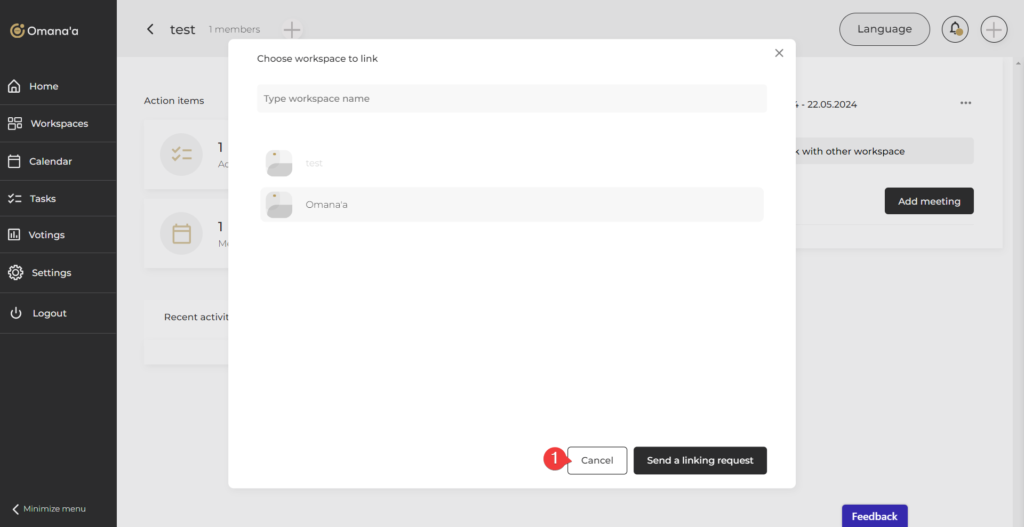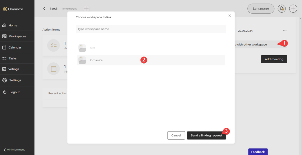 مجموعات العمل في أمناء هي مجموعات تعاون افتراضية حيث يمكن للمستخدمين مشاركة المستندات ومناقشة الأفكار والتعاون في مشاريع محددة من خلال النقر على علامة التبويب “مساحات العمل” في القائمة: