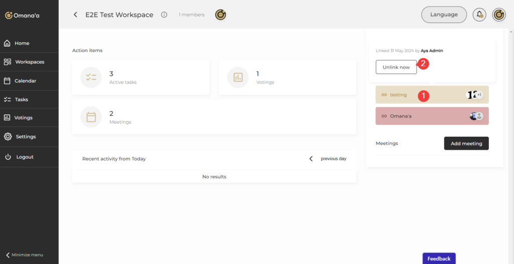 - ضمن مجموعة العمل، يمكنك تحرير تفاصيل مجموعة العمل وإضافة أعضاء وربط مجموعة العمل بأخرى وإنشاء اجتماعات واستعراض أنشطة مجموعة العمل