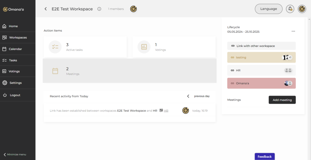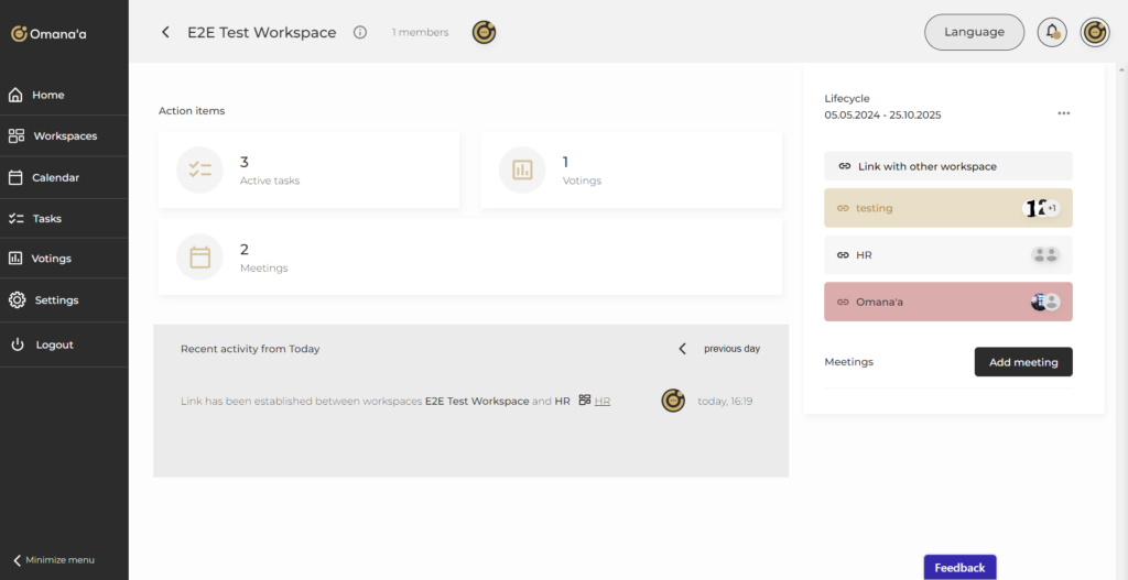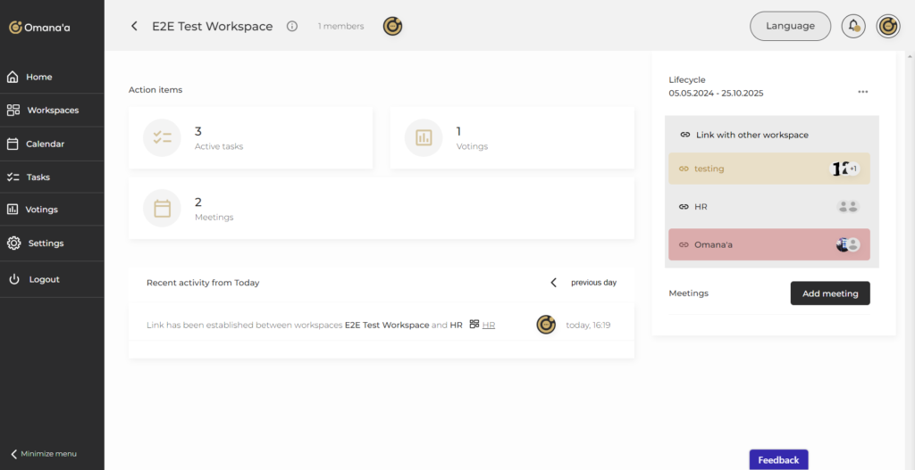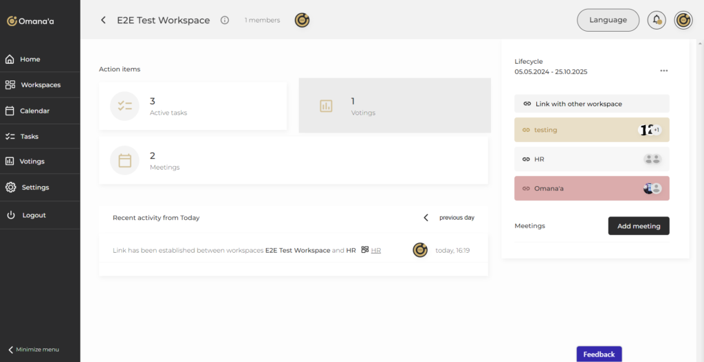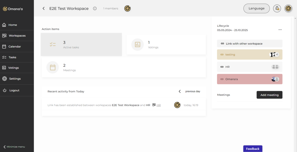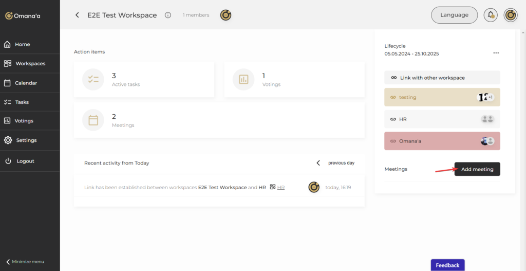 - يمكنك عرض الأنشطة الأخيرة المتعلقة بالمهام والتصويتات والاجتماعات يومًا بعد يوم ويمكنك النقر على النشاط للوصول إلى مزيد من التفاصيل أو اتخاذ الإجراءات ذات الصلة.